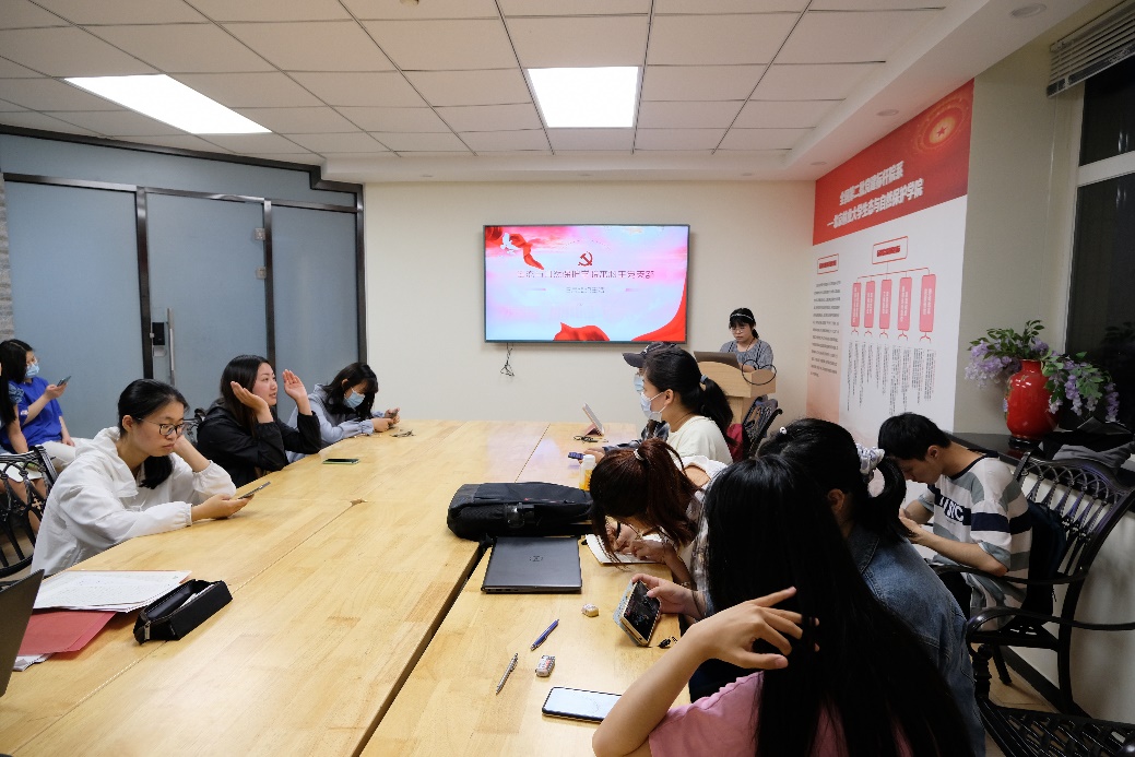 会议第三项是支部各小组代表分别汇报了各组五月支部活动的开展情况。第一组韦姝羽同志介绍了组内“研读党史经典,传承红色精神”活动的情况,各小组成员准备朗读材料和赏析感悟并由小组长组织线上会议相互分享学习,领悟革命精神,小组分工明确;第二组王浩月同志以“双星陨落”为主题,以线上会议的形式回顾了“世界杂交水稻之父”袁隆平与“中国肝胆外科之父”吴孟超为国家和人民做出的巨大贡献;第三组曹静瑄同志介绍了小组进行“党史人物特辑“活动情况,通过相互分享,组内交流的方式,学习了董必武、刘胡兰、叶剑英等优秀党员人的感人事迹与高尚品质,活动组织有序,成员收获良多。