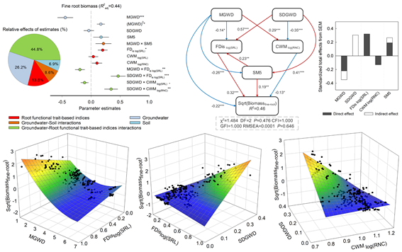 (1) Wang Y, Wang JM, et al. (2021) Groundwater and root trait diversity jointly drive plant fine root biomass across arid inland river basin. Plant and Soil