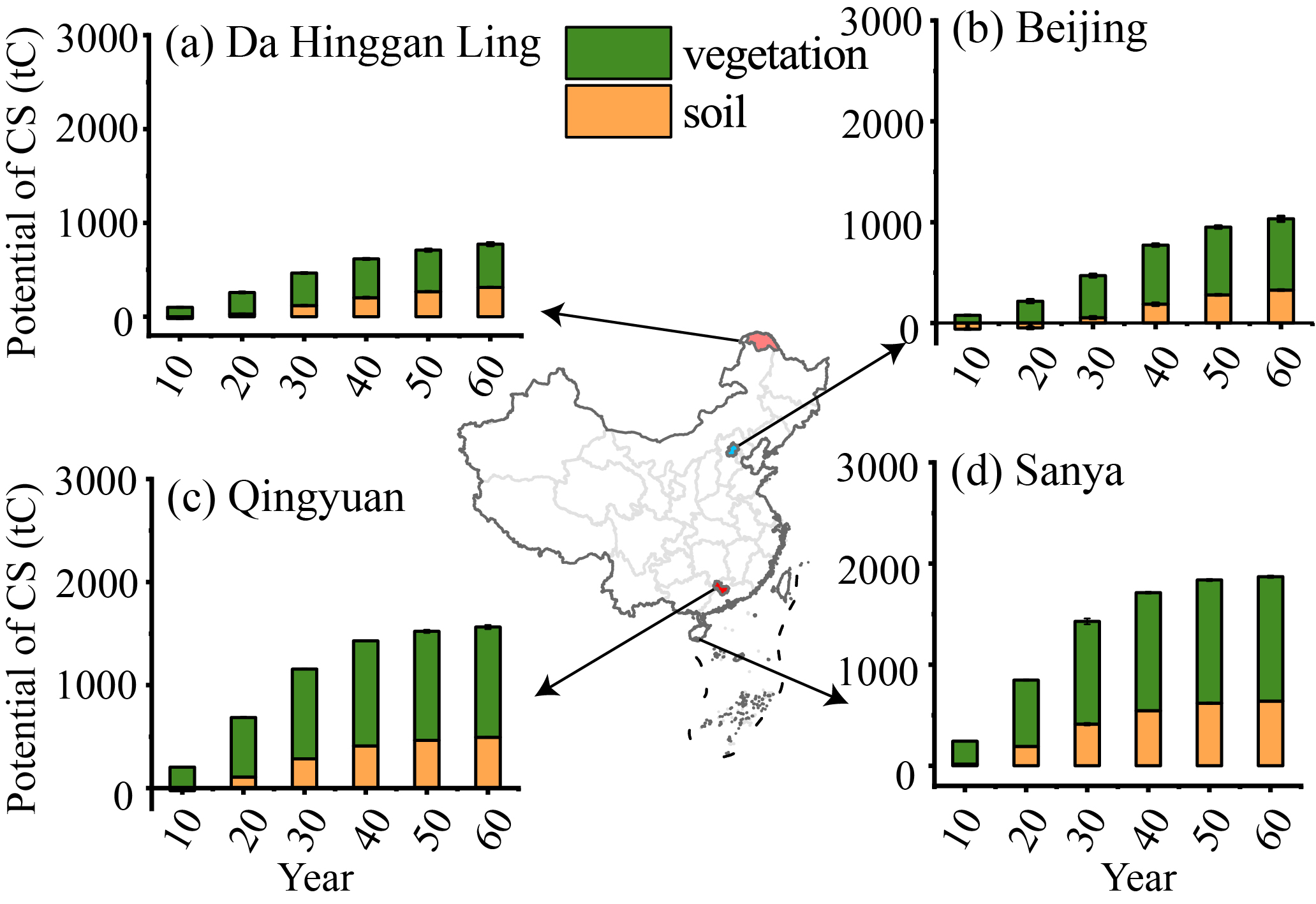 20世纪90年代以来,中国在造林/再造林项目上进行了大量投资;目前,中国具有世界上最大面积的人工林,每年产生了巨大的碳汇效应,为缓解全球气候变化作出了重大贡献。2020年,中国承诺在2060年前实现碳中和目标,并将其确定为重要的国家战略目标之一;同时,中国也承诺到2035年森林覆盖率达到国土陆地总面积的26%。种种迹象表明,未来几十年中国将通过造林/再造林活动建立大量人工林,并将持续产生具体的碳汇效应。