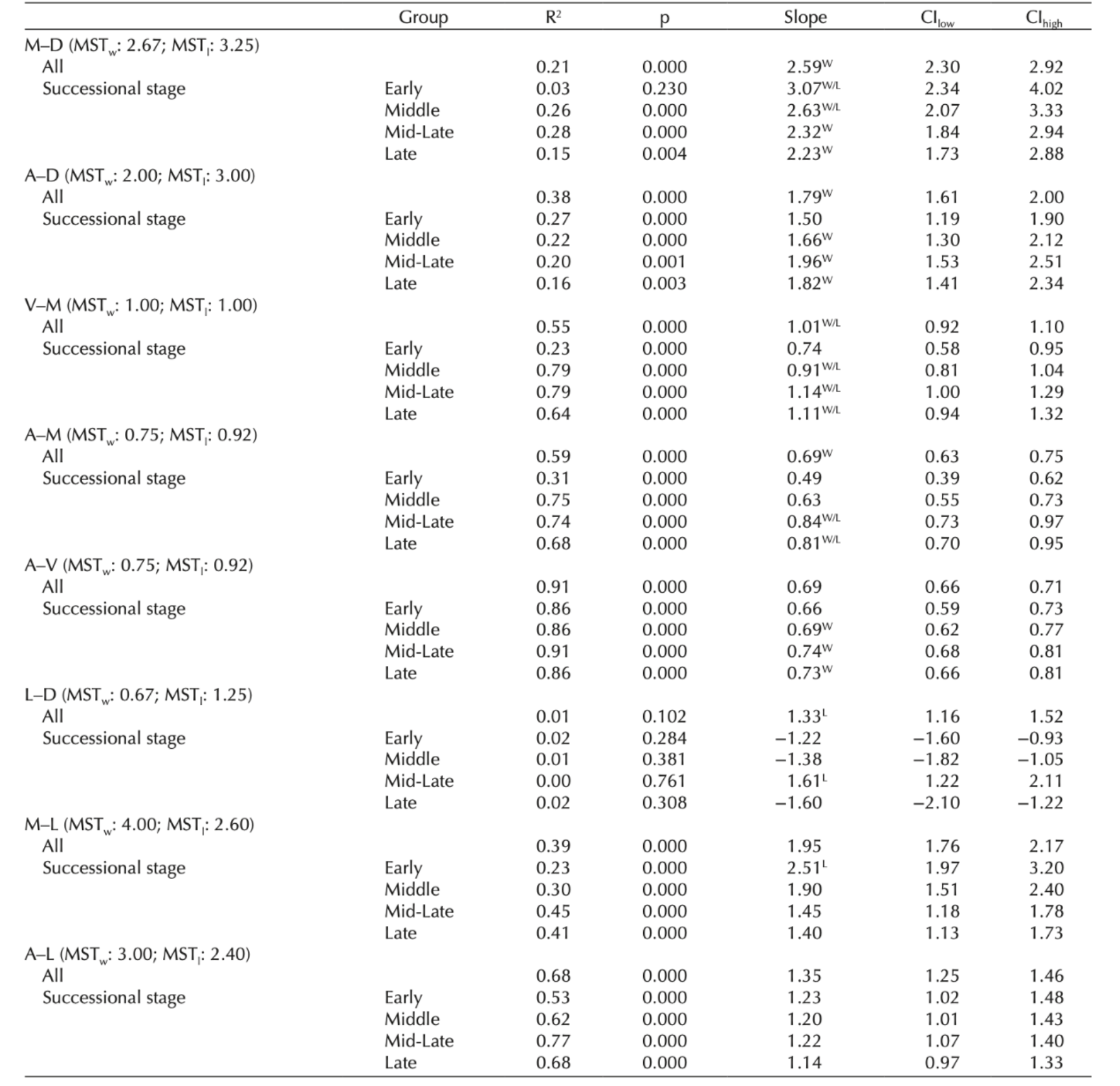 结果表明,这些细根相关生长关系很少符合MSTl 的预测。在演替后期的森林中,细根MAVD之间的相关生长关系均符合MSTw 的预测。然而,与L有关的关系与MSTw 的预测偏离较大(图1,[1]表1)。