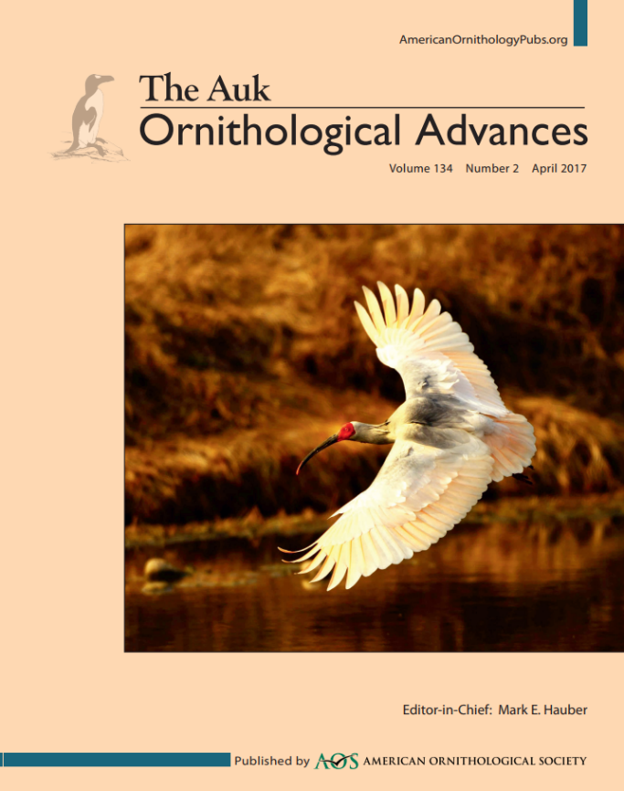 Yuanxing Ye, Yiting Jiang, Canshi Hu, Yao Liu, Baoping Qing, Chao Wang, Esteban Fernández-Juricic, Changqing Ding*. 2017. What makes a tactile forager join mixed-species flocks? A case study with the endangered Crested Ibis Nipponia nippon. The Auk, 134(2): 421-431. 封面文章SciencedailyEurekalert,Phys等媒体报道