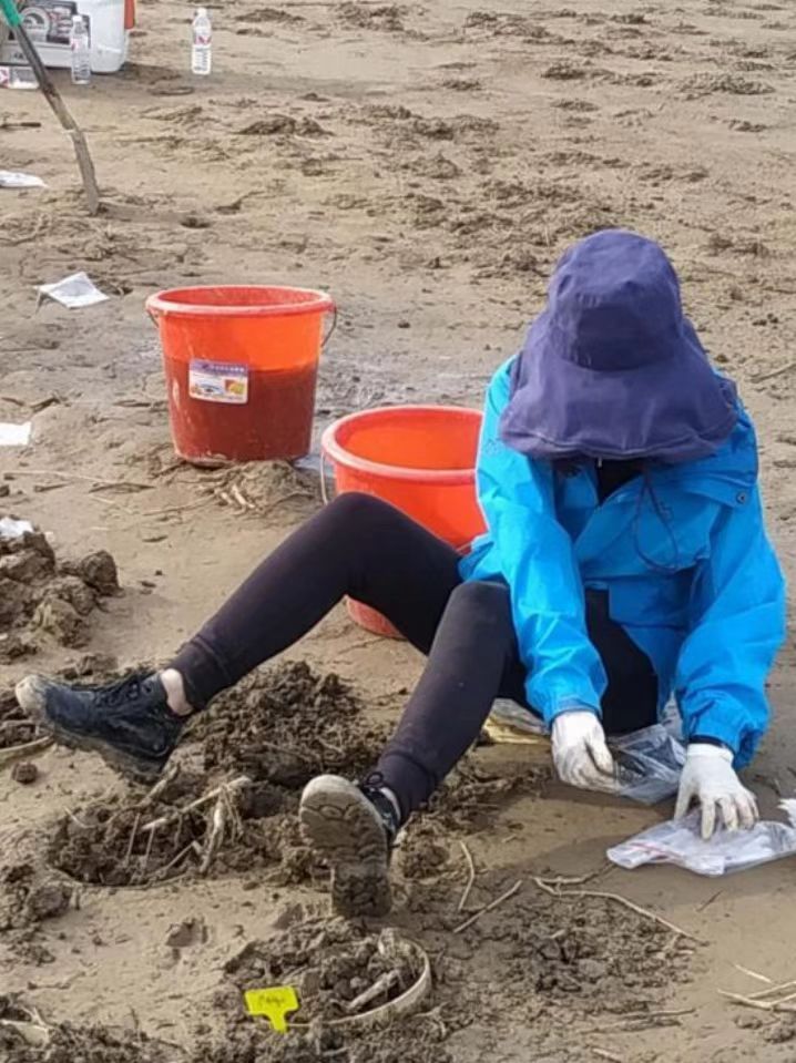 野外实验是艰难的。我们一般34个人结伴出外业,地点包括东营黄河口、福州闽江口、珠海珠江口等滨海湿地,外业时间为7-10月份居多,正是滨海湿地最热的时候,太阳极其毒辣,海风也并不像诗里描绘的一样温柔,还充斥极其凶猛繁多的湿地蚊子。大多数情况下,我们一下车鼻腔里就会瞬间充斥着热气,衣服很快就会被汗水全部润湿。因为蚊子极多,我们往往还要在这种天气下将自己裹得严严实实,工作条件可谓极其恶劣。每一天我们都在找样地、打样方、挖土取土,每一次结束工作都满身泥,脸也晒掉了皮,受着精神和物质的双重压力。此外,涨水、下雨这种天气因素也常常阻碍我们的外业安排。现在回想起来,不仅是一段特别难忘的经历,还饱含着我们对既定任务的坚持不懈,我们团结奋战的团队情谊。