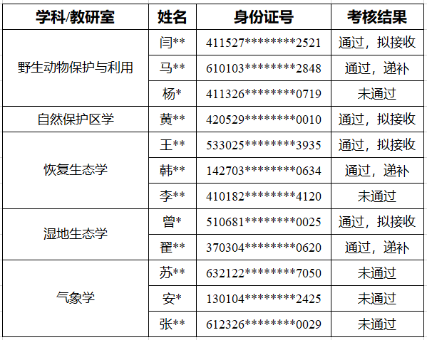 【人事】生态与自然保护学院2021年教师招聘第一批考核结果公示