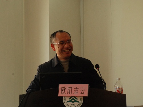 11月25日,由我院主办的“自然保护大讲堂––我国生物多样性空间格局特征与自然保护区建设与管理”主题讲座在行政楼第九会议室举行。主讲人为来自中国科学院生态环境研究中心的副主任欧阳志云博士,我院的全体研究生和大一同学参加了此次讲座。