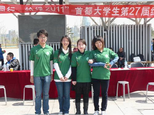 201142日,和谐家园志愿者协会参加了绿色你我同行,给绿2011”首都大学生第27届绿色咨询活动。协会成员作为活动志愿者主要负责社团活动区附近的服务工作。