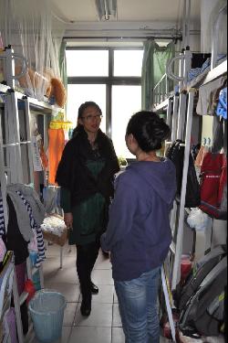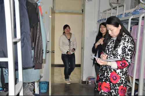走访过程中,学院领导仔细检查了学生宿舍的用电情况和卫生情况,发现问题让学生马上整改,着重强调了宿舍的安全卫生问题。王书记指出,每一个同学都应该严格遵守学校相关的公寓管理规定,在宿舍内严禁使用违章电器,注意及时关闭电源,及时整理宿舍等。同时,王书记强调学生要提高安全意识,养成良好的卫生习惯。每到一处,她还很关切地询问同学们的学习、生活情况,提醒同学们注意身心健康,全面发展。