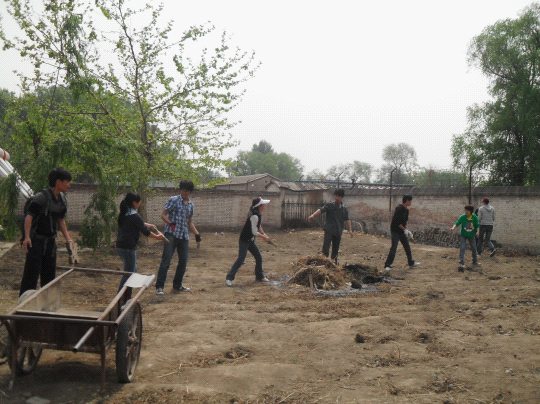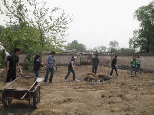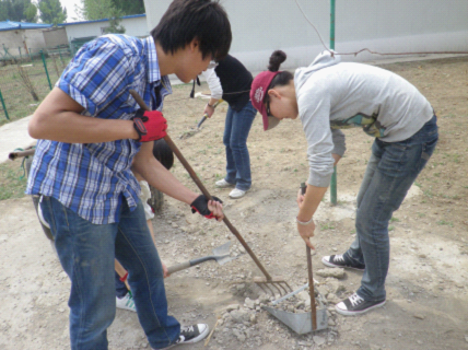 本次志愿活动以开垦耕地为主。在短短三个小时的服务时间中,同学们把原来已经硬化过的地面改造成了耕地,为中心的工作人员在此种植地瓜打好了基础。为了提高工作效率,志愿者们组成了长长的“人链”传递砖块。中午十二点整,中心的工作人员检查了志愿者们的工作,给予了大家良好的评价,并鼓励同学们积极参加志愿活动。