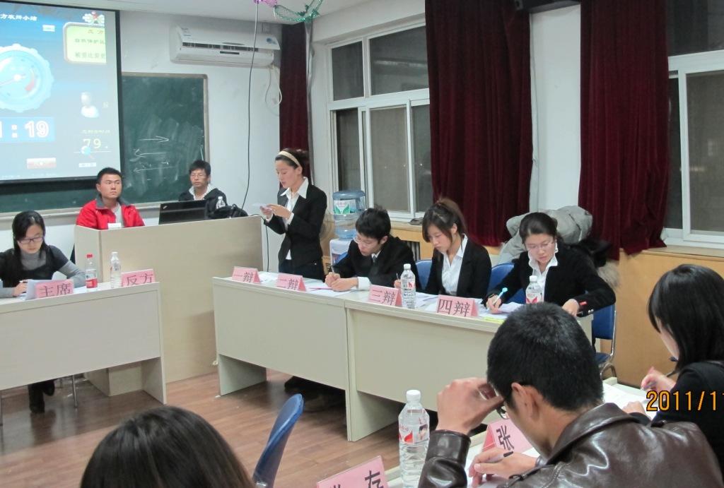 1120日晚,第五届北京林业大学三强赛分赛在主楼803如期举行。我院研究生辩论赛队员参加比赛,队员由杨韫嘉、刘方正、史林鹭、徐欢四人组成。