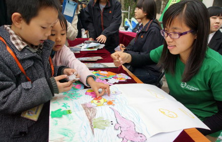 地球日活动在颐和园新建宫门内的铜牛广场开展,我院的志愿者带领28位来自同心实验学校的小朋友,参加了湿地模型、“湿地有什么?”拼图游戏、“我送地球母亲一句话”等活动,和现场的观众一起互动,耐心地宣传环保知识,体验美好自然。