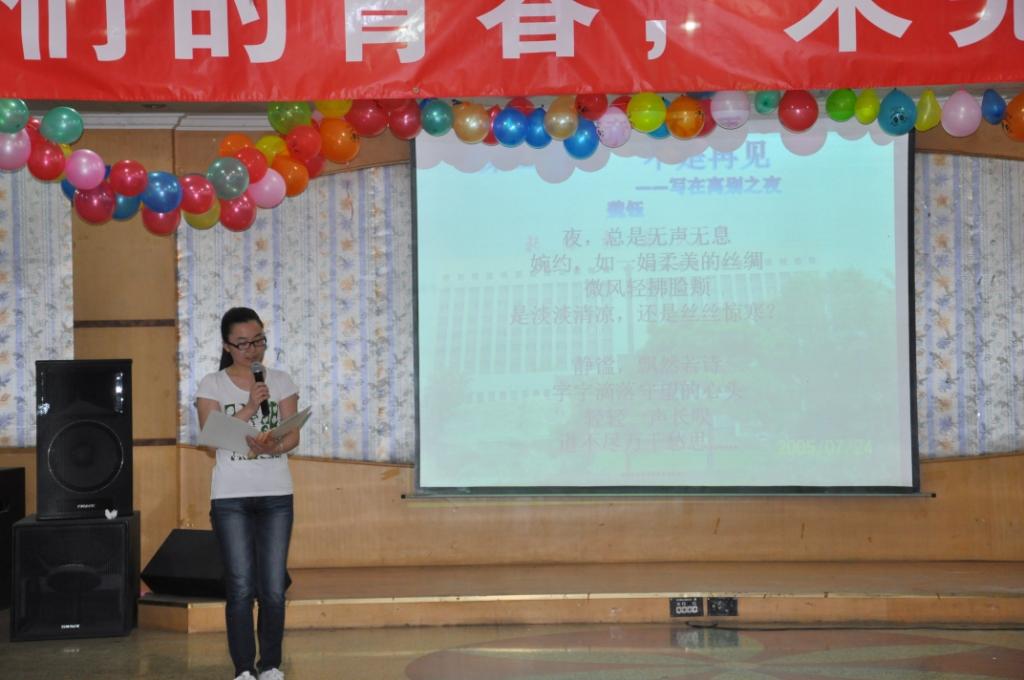 在毕业生离校前的日子里,学院师生欢聚一堂,共同欢送2012届自然保护区学院毕业生,通过晚会的形式互诉离别意,互道祝福情,为毕业生的大学生活画上了一个圆满的句号。衷心地祝愿2012届毕业生在未来的工作中一帆风顺,为学院争光、为人生添彩!