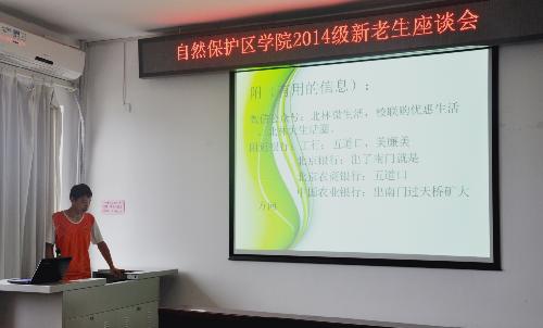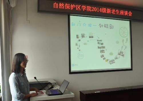 座谈会最后是提问和自由交流环节,高年级同学们走入新生中为他们答疑解惑,完全没有了学长学姐的“架子”,也让新同学们感受到了保护区学院这个大家庭温暖和谐的氛围