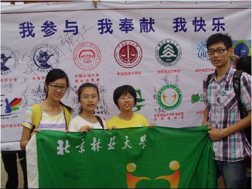 大会结束后,志愿者们合影留念,并在自己学校校徽和社团会徽处签下了自己的名字,留下自己的承诺。