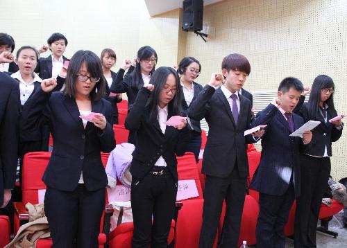 同时,大会上还宣读了院学生会会徽发布通告,历时近一年的学生会会徽征集、讨论、修改工作正式结束,由我院同学亲手设计的学生会会徽成功发布,在丰富的寓意背后,是学生会成员对学生会工作的热切期盼与希冀。在邱冬冬同学带领下,各学生组织新一届委员进行了庄严宣誓。