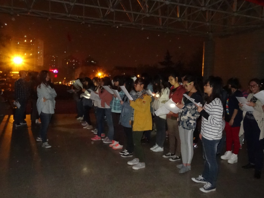 每晚9点,合唱训练准时在主楼前2楼平台上展开。合唱训练由院内有一定合唱经验的同学主要指导,参加训练的同学们充分投入,在发声技巧、演唱效果等方面均有明显的提升。