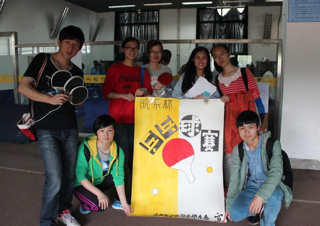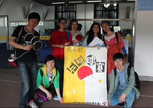 426日,2014院系杯乒乓球赛于上午8点在乒乓球馆举行,我院代表队派出了包括唐素贤、邹瑀琦、魏冠文、田海涛、陈睿、韦城府、胡骞和王馨蕊在内的8名同学参加了此次比赛。