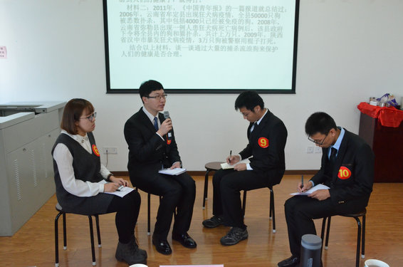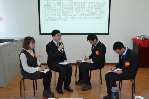 经过前期的广泛宣传、报名、简历初选等环节,共有10位选手进入此次模拟求职大赛现场。本次大赛分情景模拟面试、无领导小组讨论两个环节。首先,在情景模拟面试环节,参赛选手分别展示了自己的特色简历,包括自我介绍、应聘的职位、自我能力描述等,评委根据选手的表现进行了提问。随后,在无领导小组讨论环节,10名选手分两个小组就给定的情境展开讨论,在规定时间内形成统一的结论。最后,评委就讨论结果和选手们的表现给出意见和建议。