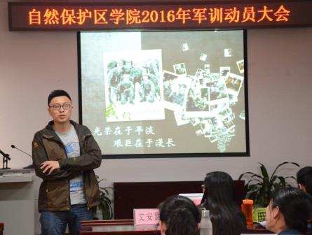 动员会上,我院2016年军训带队老师就军训概况、军训内容、管理规定、物资准备和注意事项等方面进行介绍,帮助2015级学生了解军训并提前做好军训准备。保护区15-1班和15-2班班主任高斌老师和马静老师分享了军训的意义,激励学生在军训期间磨砺意志,提升自身素质。随后,团委老师和班主任逐一解答同学们的疑惑和问题。