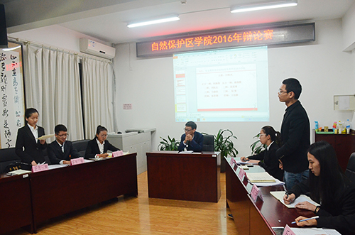 109日晚,自然保护区学院2016年新生辩论赛于主楼1102举办。往届辩论赛优秀辩手担任评委,16级本科新生分为两组展开激烈对决。