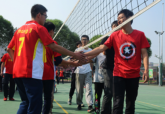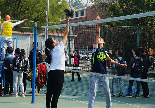 比赛伊始,场上便展开激烈角逐。队员们满怀热情、通力协作,场下的老师、同学们不时呐喊助威,为队员加油打气,现场气氛热烈。首场比赛结束,男排以1925的比分落后,而女排攻势猛烈,以249遥遥领先。男排队员们调整战术,全力配合,勇追比分,女排队员亦不骄不躁,稳扎稳打,充分发扬了奋力拼搏的竞技精神。最终男排代表队惜败,而女排不负众望,整场比赛以20大比分赢得胜利。