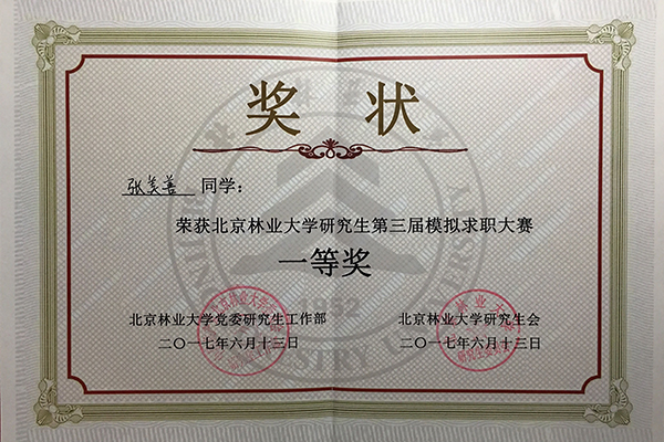 613日晚,北京林业大学研究生第三届模拟求职大赛决赛完美落幕,我院16级研究生张美善同学荣获冠军。